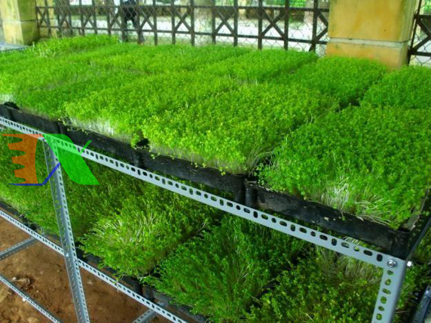Cách xử lý giá thể Tribat dùng cho mô hình sản xuất công nghiệp quy mô lớn. Với các hộ gia đình hay cá nhân với quy mô nhỏ do không có điều kiện thời gian chúng ta chỉ cần trồng một lớp mỏng giá thể Tribat khoảng 1cm. Sau khi thu hoạch rau mầm chúng ta dồn giá thể vào thùng xốp phơi cho khô rồi trồng rau ăn lá hoa hoặc cây cảnh.