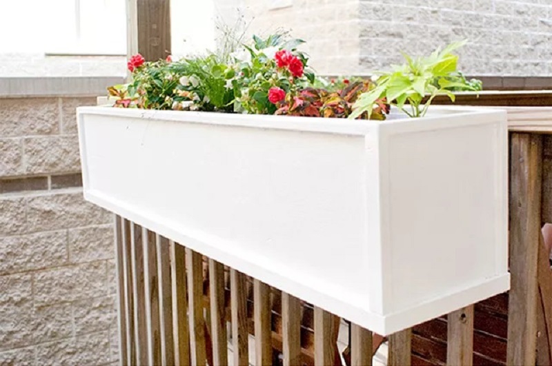 Tăng cường bộ bài của bạn bằng một hộp hoa để treo trên lan can.