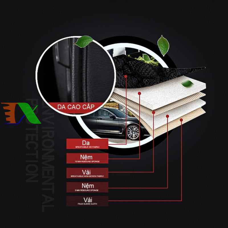 Sản phẩm được làm bằng da PU, có độ bền cao ~ 10 năm. Màu sắc đa dạng, dễ dàng cho bạn lựa chọn màu sắc theo mùa, theo mệnh, theo màu xe....