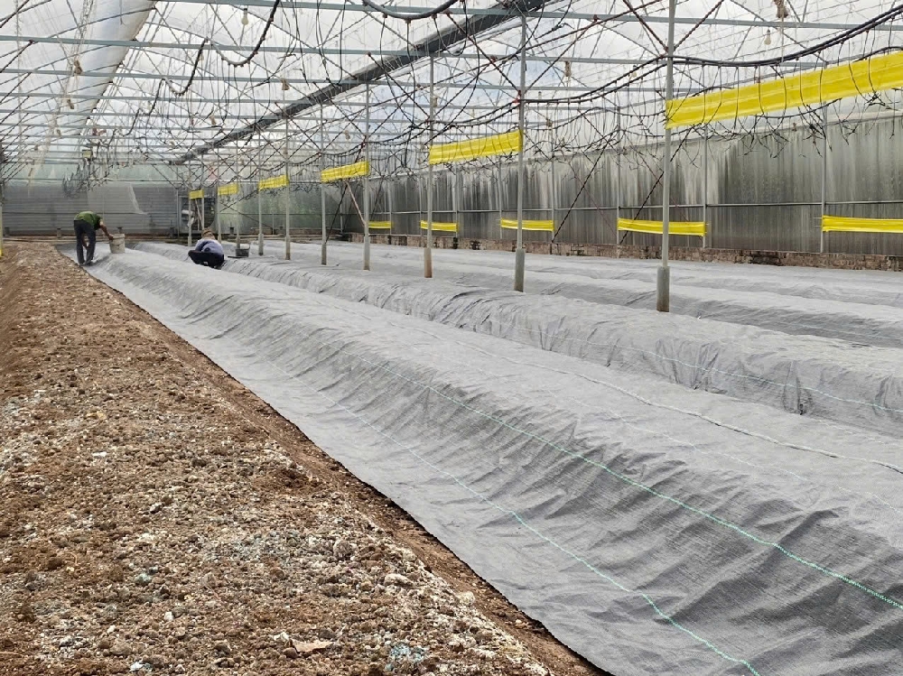 • Trải bạt: Kéo căng tấm bạt phủ đều trên mặt luống, đảm bảo bề mặt phẳng và không có nếp nhăn. Đối với màng PE hai mặt, luôn trải mặt màu bạc hoặc xám hướng lên trên để phản xạ ánh sáng, xua đuổi côn trùng và giảm hấp thụ nhiệt. Mặt màu đen phải được úp xuống dưới để ngăn cản hoàn toàn ánh sáng và diệt cỏ.