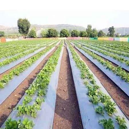 Màng phủ PE ("PE Mulch Film"): Ngược lại, đây là một tấm phim nhựa (nilon) liền khối, được sản xuất bằng phương pháp thổi hoặc cán. Cấu trúc này hoàn toàn không thấm nước và không khí. Để tối ưu hóa công năng, màng PE thường được sản xuất với hai mặt có màu khác nhau (thường là mặt đen và mặt bạc/xám). Mặt đen úp xuống đất để ngăn ánh sáng và diệt cỏ. Mặt bạc/xám hướng lên trên để phản xạ ánh sáng mặt trời, giúp tăng cường quang hợp cho tán lá dưới và xua đuổi một số loại côn trùng. Tuy nhiên, nhược điểm cố hữu của màng PE là nguy cơ gây bí đất, làm tăng nhiệt độ đất quá mức vào mùa nắng và không cho nước mưa thấm qua, có thể dẫn đến úng hoặc khô hạn cục bộ nếu không quản lý tưới tiêu tốt.