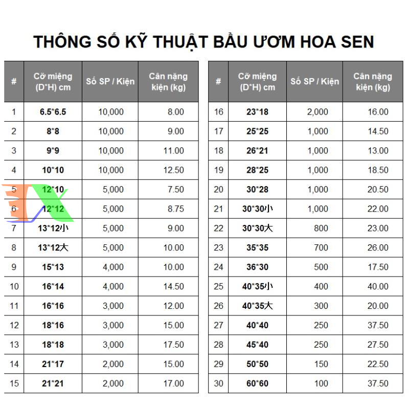 • Loại: Bầu Hoa Sen ươm giống BHS
