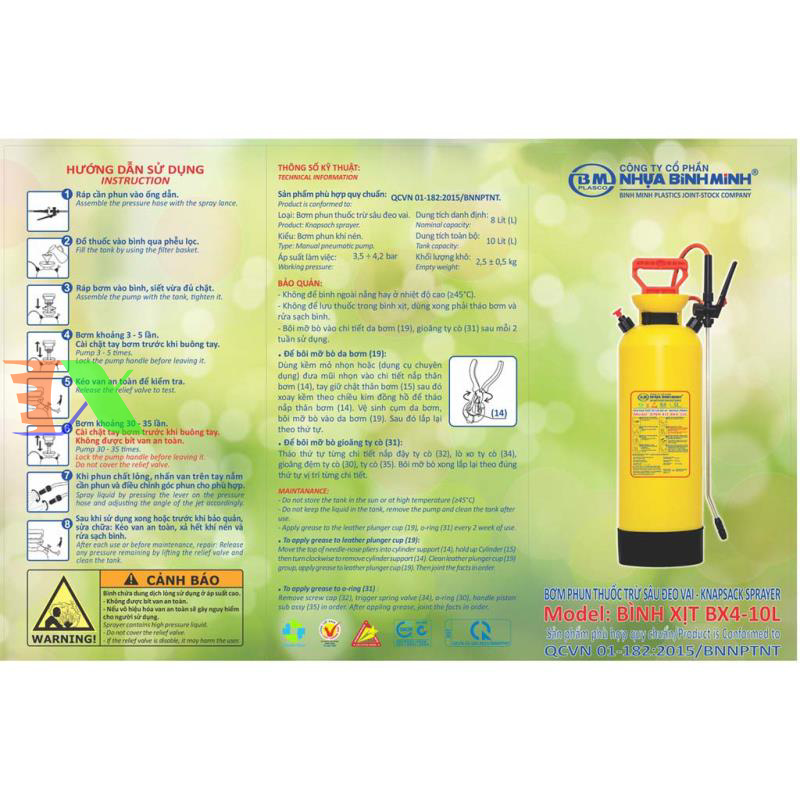 Bình xịt tưới khí nén BKN-36, Bơm tay lắp chai nhựa, Bơm phun sương bằng đồng