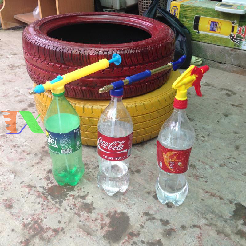 Bình xịt tưới cây, bình xịt tưới rau hoa với pít tông bằng đồng, đảm bảo độ bền cao, có thể lắp vào các loại chai nhựa 1,5lit đã qua sử dụng (chai coca, chai pepsi, chai 7up....) hoặc các loại chai nhỏ hơn như các chai trà xanh, hay chai C2...