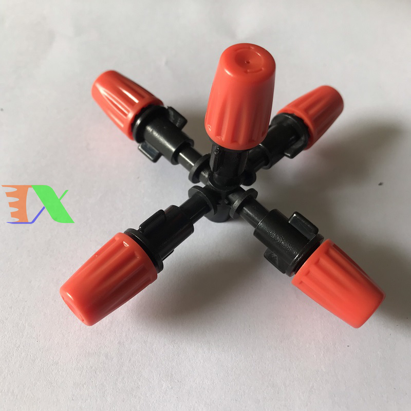 Bộ kit Tưới phun sương 5 đầu, khởi thủy trơn 6mm (10 lit / h) tổng là 50lit / h Đầu tưới phun sươngbéc phun sương (10 lit / h) là ứng dụng tuyệt vời cho khu vườn của bạn khi bạn muốn tưới tự động, là ứng dụng tuyệt vời đến từ Isarel. Sản phẩm này còn gọi là đầu tưới Lan, đầu phun sương làm mát, phun sương nhà kính, phun sương quán bia. Ưu điểm nổi bật là chi phí rẻ hơn nhiều so với các đầu bằng đồng (so với 20k / béc)