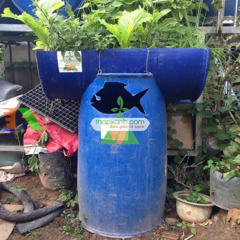 Hệ thống Aquaponics AQ-TX09 là hệ thống Aquaponics mini (dùng thùng phi nhựa 220l cắt đôi).