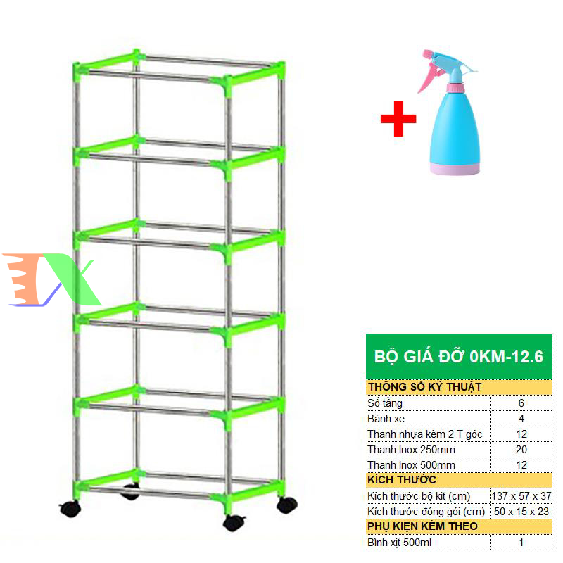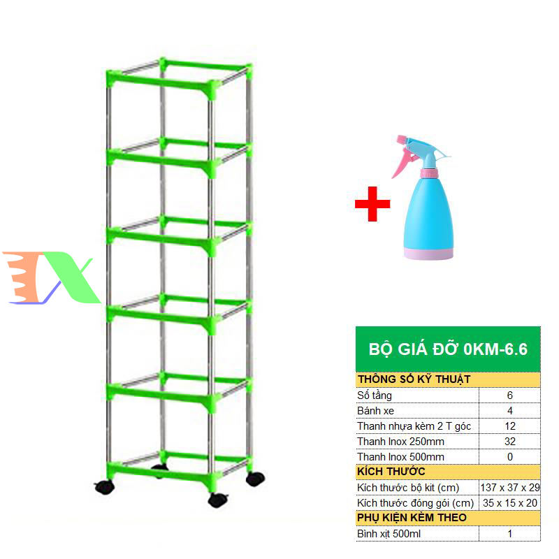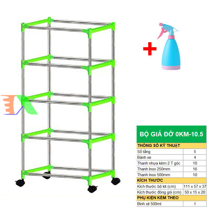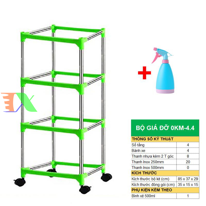 Bộ khung giá Khay trồng rau mầm thủy canh 0KM, Gồm Giá đỡ, Bình xịt, Giá đỡ có 4 bánh, Bình xịt, sản phẩm làm bằng nhựa ABS nguyên sinh, có độ bền cao không độc hại