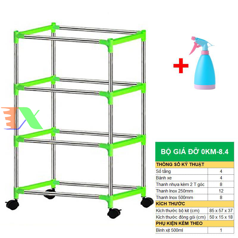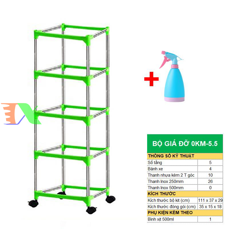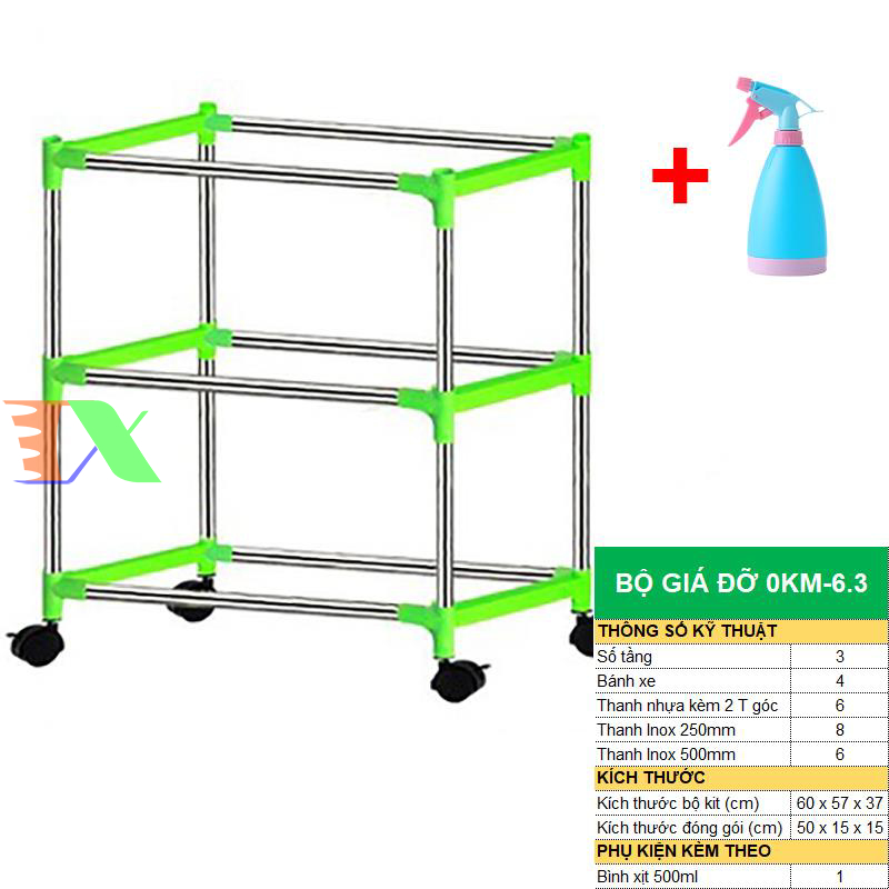 Bộ sản phẩm gồm : Giá đỡ có 4 bánh + Bình xịt nước.