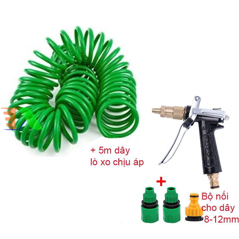 Bộ vòi xịt nước tưới cây đa năng, kèm 5m dây lò xo chịu áp