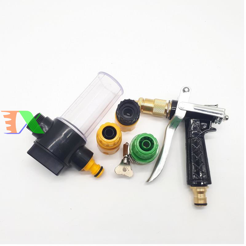 Bộ vòi xịt nước tưới cây, Rửa xe cho việc rửa xe, tẩy rửa sàn nhà trở nên dễ dàng hơi. Với thiết kế nhỏ gon, thuận tiện dễ dàng tháo lắp, chỉ cần thao tác kết nối nhanh gọn đơn giản với vòi phun rửa giúp bạn tiết kiệm thời gian và chi phí