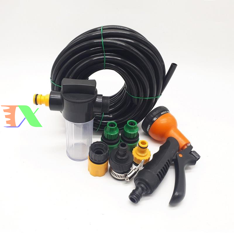 Bộ vòi xịt nước tưới cây, Rửa xe cho việc rửa xe, tẩy rửa sàn nhà trở nên dễ dàng hơi. Với thiết kế nhỏ gon, thuận tiện dễ dàng tháo lắp, chỉ cần thao tác kết nối nhanh gọn đơn giản với vòi phun rửa giúp bạn tiết kiệm thời gian và chi phí