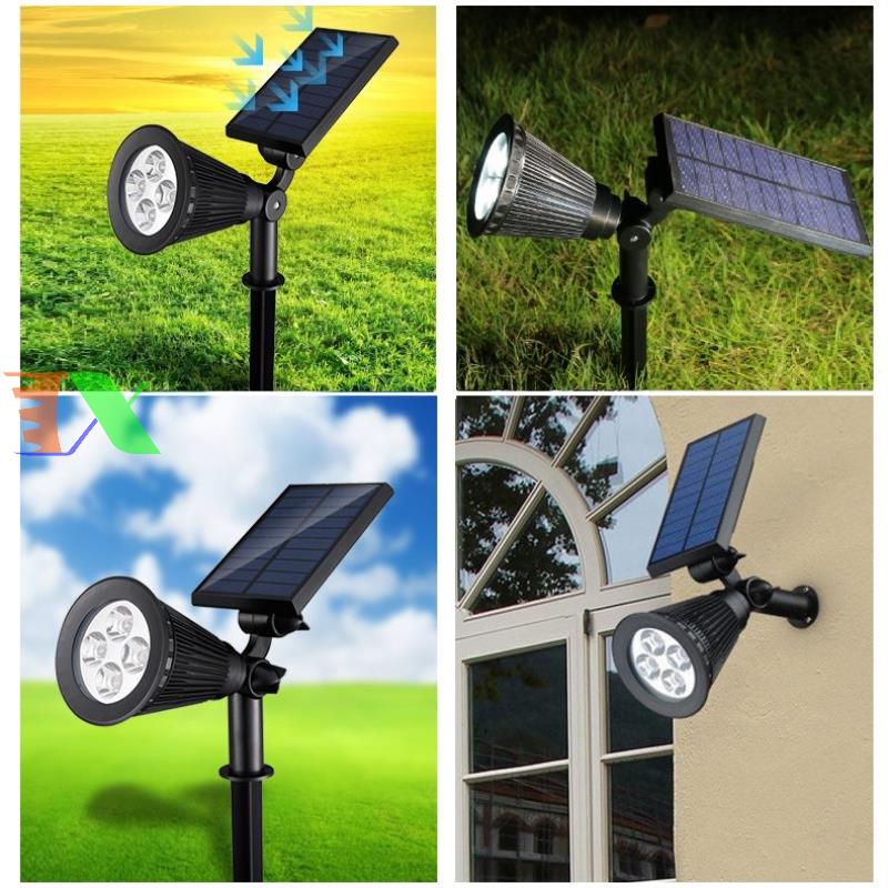 - Đèn chiếu tiểu cảnh năng lượng mặt trời SAN-4: Đây là mẫu đèn rọi với 4 mắt led, công suất 4w, tiết kiệm năng lượng. Đèn này đa dạng về màu sắc. Đèn được thiết kế tấm pin tách rời khỏi đèn, có thể quay các góc đa dạng, dễ dàng chỉnh hướng tiếp nhận ánh sáng từ mặt trời mà không ảnh hưởng đến góc chiếu của đèn. Đèn được thiết kế chống nước tốt, có thể dùng ngoài trời mà vẫn rất bền bỉ.