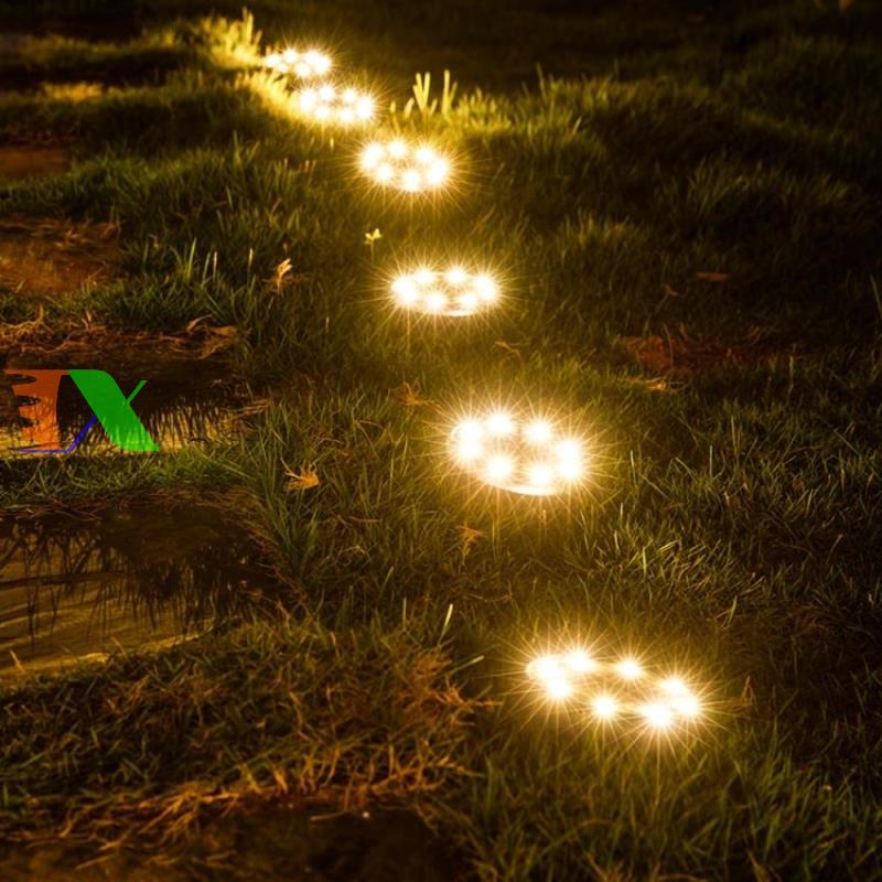 - Đèn trang trí sân vườn Disk Light SBN-8 Đèn thiết kế 8 mắt led, chân cắm nhọn, phù hợp làm đèn dẫn hướng ở sân vườn. Mặt đèn thiết kế nhỏ gọn gồm các mắt led và tấm pin sạc, tất cả đều hướng lên trên để nhận đủ ánh sáng sạc cho pin lion đã tích hợp sẵn trong thân đèn. Mặt đèn vòm cầu nhẹ và dày dặn chắc chắn, đảm bảo sức chịu lực trong trường hợp có đi lại hay di chuyển bên trên cũng không bị vỡ hỏng.