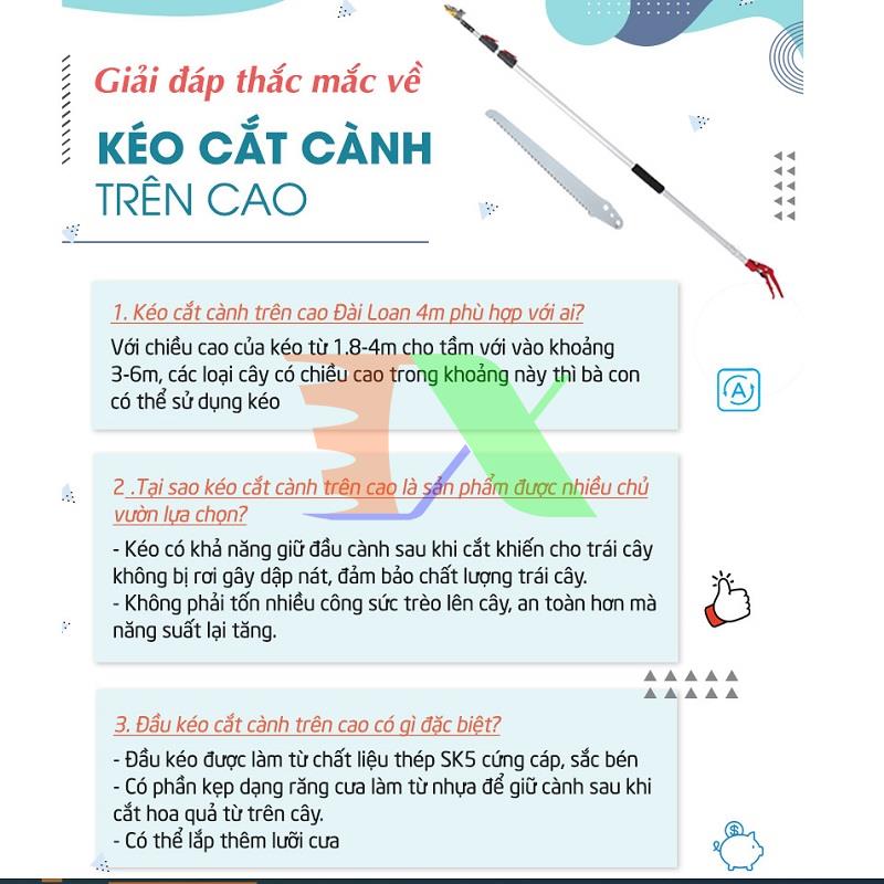 Kéo có nhiều loại với kích thước tối đa khác nhau từ 3-4m đa dạng lựa chọn cho bà con phù hợp với từng loại cây với chiều cao khác nhau.