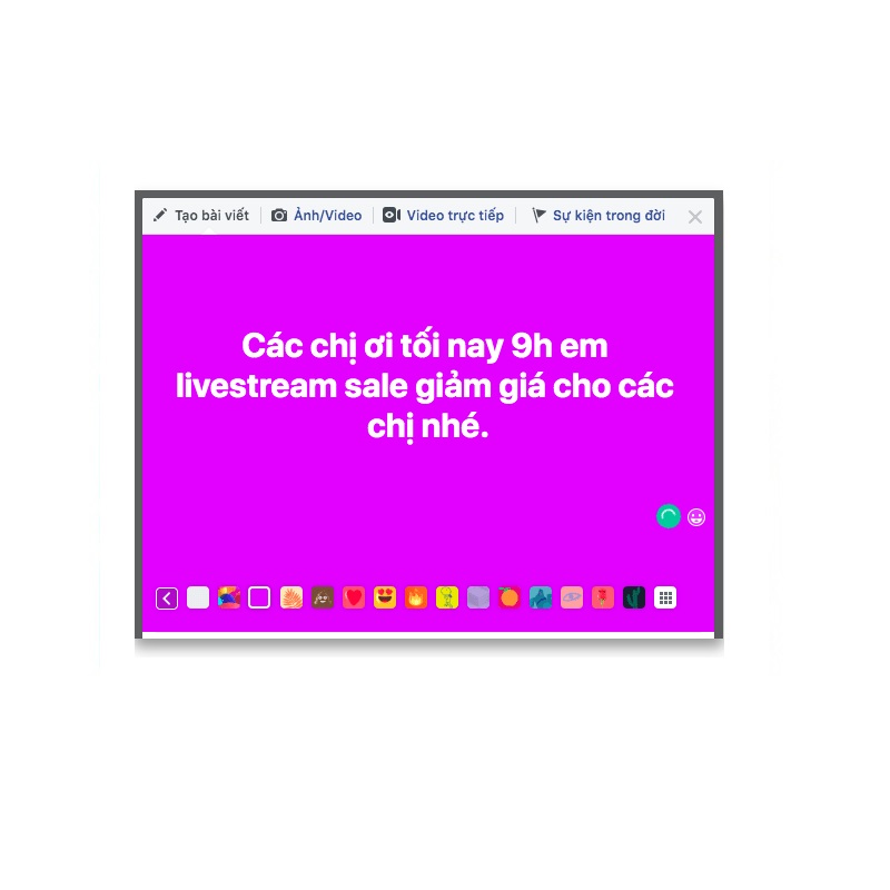 “Các chị ơi, tối nay 9h em sẽ livestream để sale giảm giá cho các chị, sale sập sàn luân, các chị hãy nhớ đón xem livestream 9h tối nay nha.”