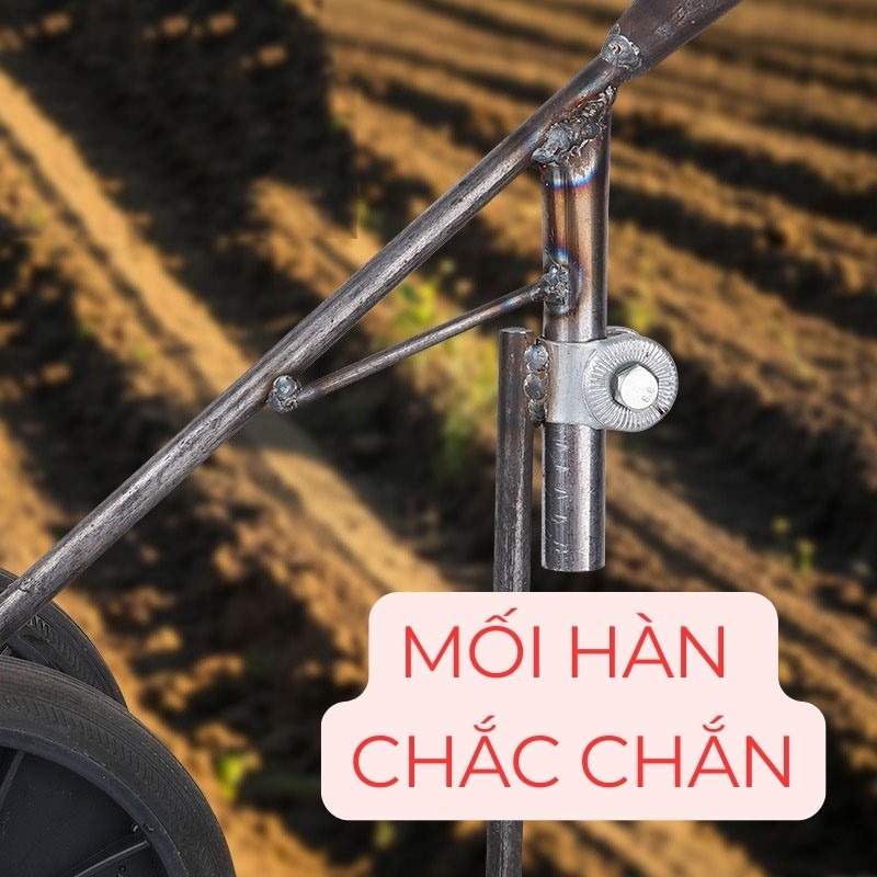 Sản phẩm được chế tạo từ vật liệu thép mạ kẽm dày 1–2 mm, có khả năng chống gỉ sét, chịu mài mòn và va đập tốt trong môi trường đất đá, nắng mưa. Tay đẩy được thiết kế công thái học, vừa tầm với vóc dáng người lao động Việt Nam, hạn chế tối đa mệt mỏi khi thao tác kéo đẩy. Cấu trúc bánh xe đơn giản nhưng hiệu quả, giúp di chuyển nhẹ nhàng và linh hoạt trên nhiều địa hình canh tác khác nhau.