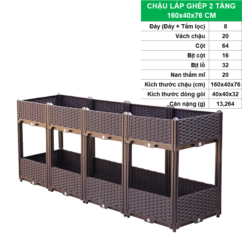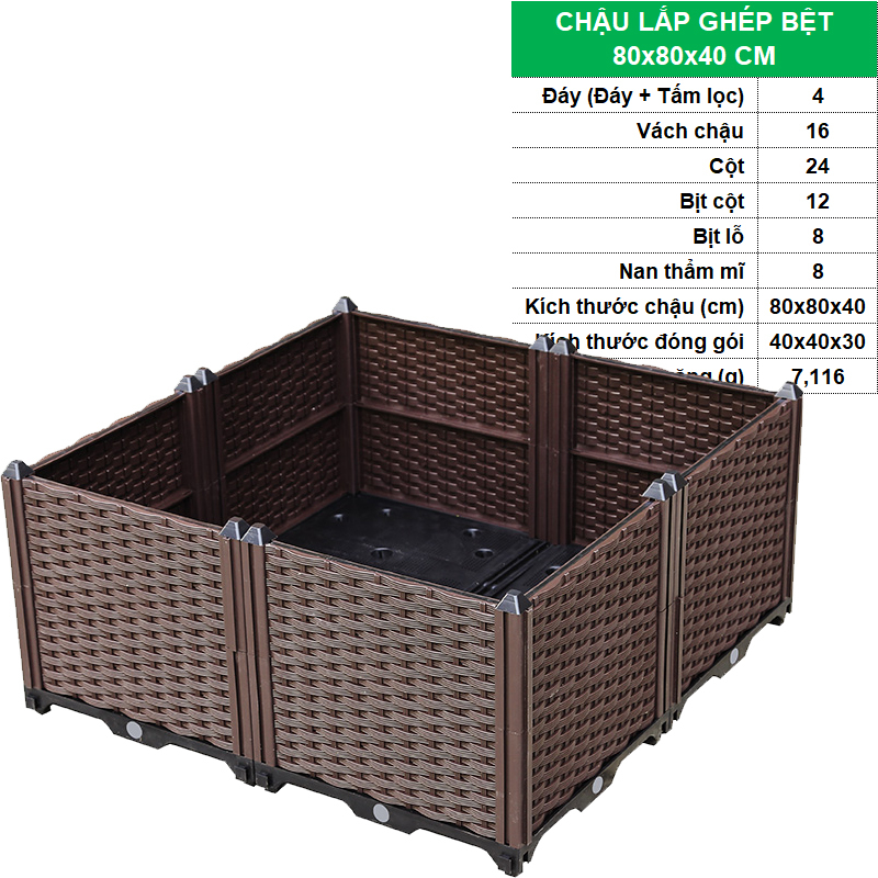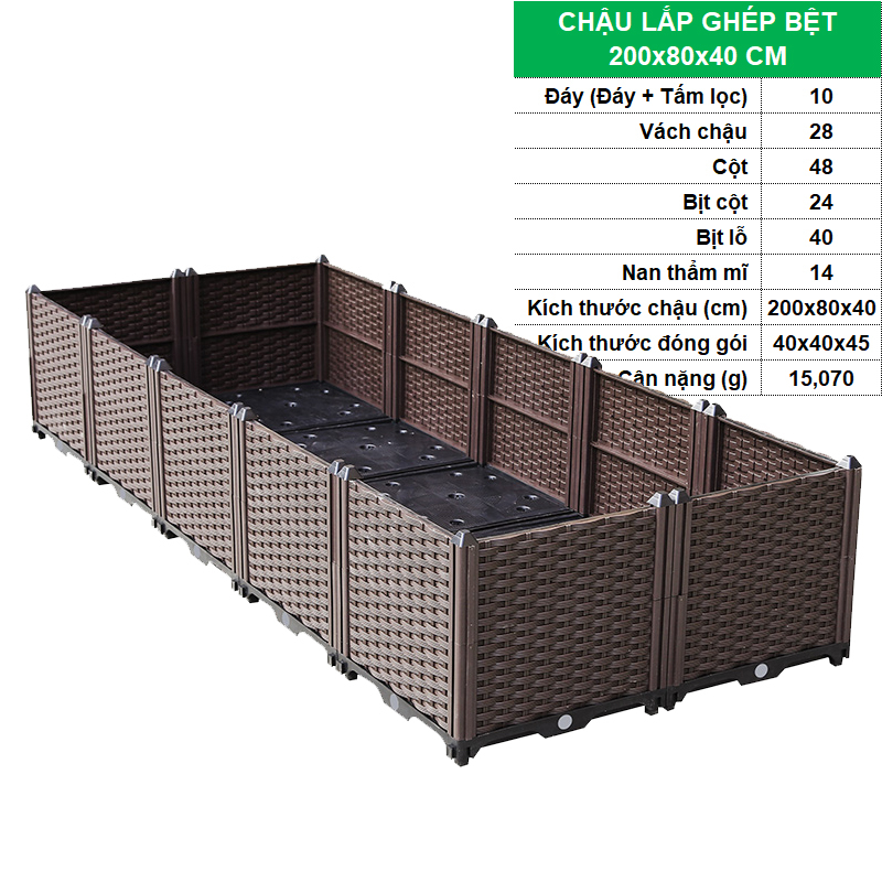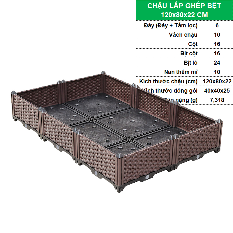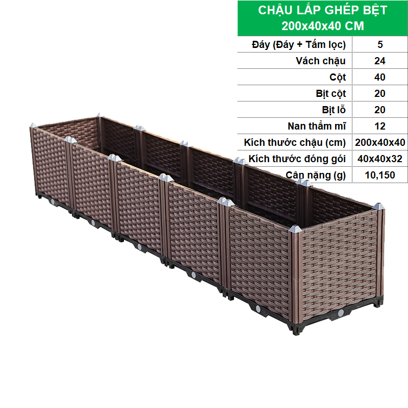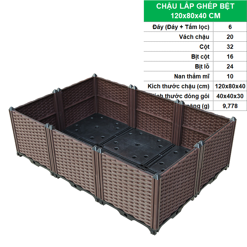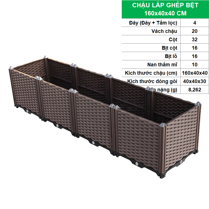 -Chậu ghép màu nâu có thể ghép dài , ghép rộng hay cao tùy theo nhu cầu của bạn và tùy theo mục đích trồng của mỗi loại cây