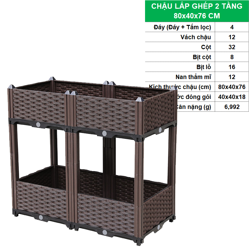 Chậu lắp ghép CLG-40, Chậu lắp ráp trồng Rau Hoa, Chậu thông minh dùng để trồng các loại hoa, rau, củ, quả thích hợp với mô hình chung cư, sân thượng, căn hộ tập thể, ban công thay thế cho việc trồng rau bằng hộp