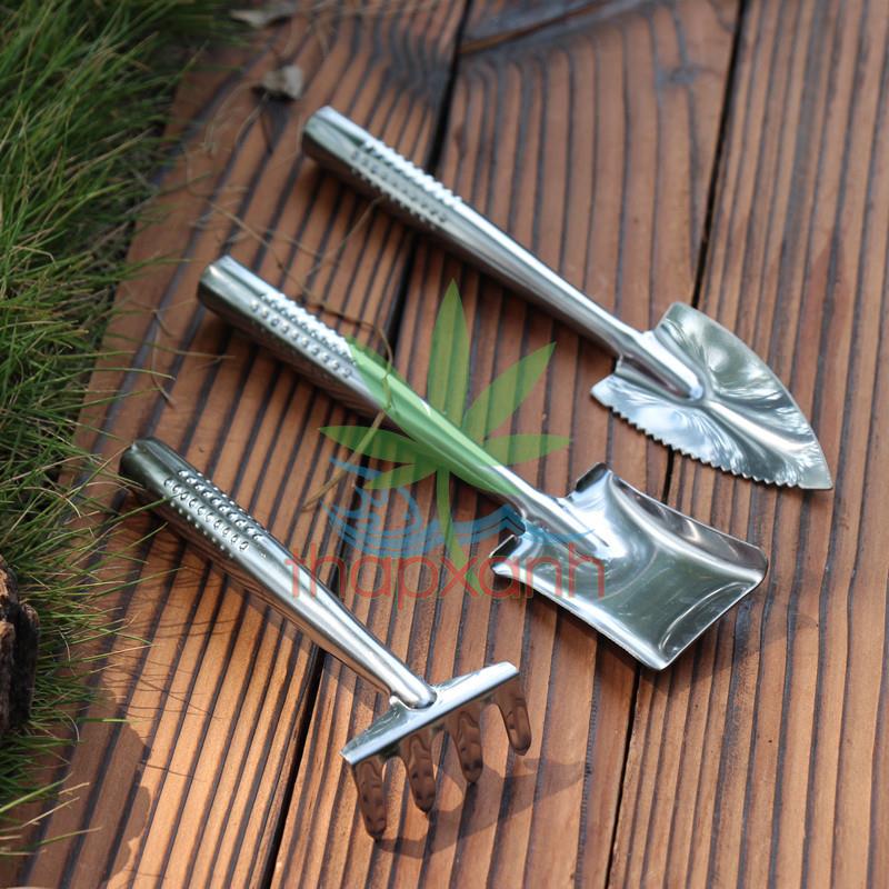 2. Bộ dụng cụ làm vườn 3 món thép trắng TXE-3IN, Bộ xẻng 3 món Inox , Xẻng 3 trong một