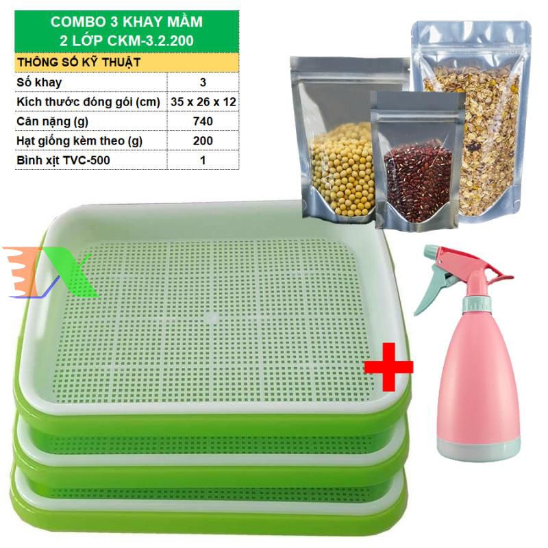 Bộ kit Khay trồng rau mầm thủy canh chuyên dụng TKM-6.3, Khay, Giá đỡ, Vòi xịt, Hạt giống