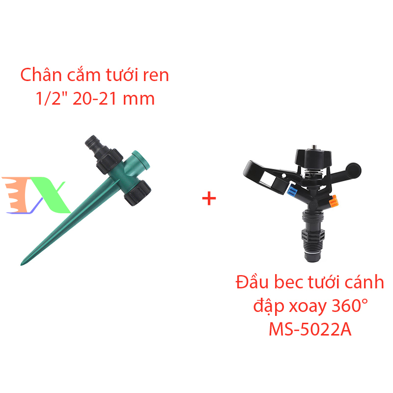 Đầu bec tưới cánh đập xoay 360° MS-5022A, Sprinkler Gun Kèm chân đế