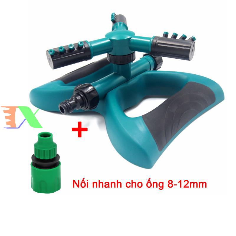 - Đầu tưới nước tự động 3 cánh xoay 360° được thiết kế với trục cánh tay quay bằng tưới nước kép số 3 cánh và xoay 360° giúp việc chăm sóc cây vườn, làm mát sân, mát mái được thuận tiện, nhanh chóng và tiết kiệm nước
