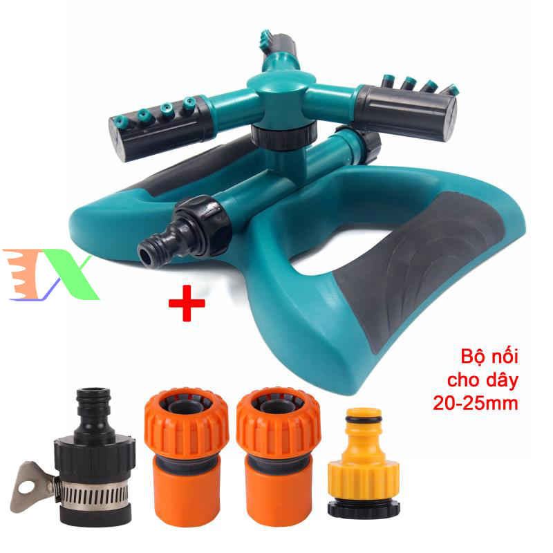 - Đầu tưới nước tự động 3 cánh xoay 360° được thiết kế với trục cánh tay quay bằng tưới nước kép số 3 cánh và xoay 360° giúp việc chăm sóc cây vườn, làm mát sân, mát mái được thuận tiện, nhanh chóng và tiết kiệm nước