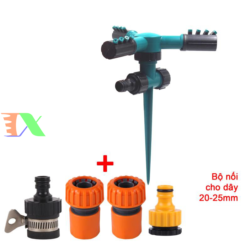 Đầu tưới 3 cánh xoay 360° T3C-CC.525 Kèm bộ nối nhanh 20, Vòi tưới phun mưa 360 độ Có chân cắm