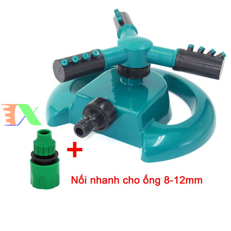 - Đầu tưới nước tự động 3 cánh xoay 360° được thiết kế với trục cánh tay quay bằng tưới nước kép số 3 cánh và xoay 360° giúp việc chăm sóc cây vườn, làm mát sân, mát mái được thuận tiện, nhanh chóng và tiết kiệm nước,