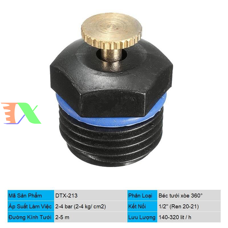 Đầu tưới 3 cánh xoay 360° T3C-CB, Vòi tưới 3 cánh 360 độ Chân đế hình cánh bướm lắp nối nhanh 16
