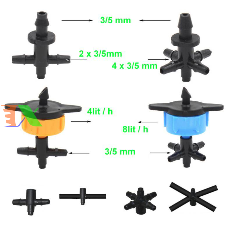 Khởi thủy 1 đầu gân cho ống PE Φ3/5Sản phẩm này đã được ứng dụng rộng rãi trên nhiều loại cây trồng, nhiều mô hình tưới khác nhau như ngoài cánh đồng, tưới cảnh quan, tưới nhà kính, nhà lưới.