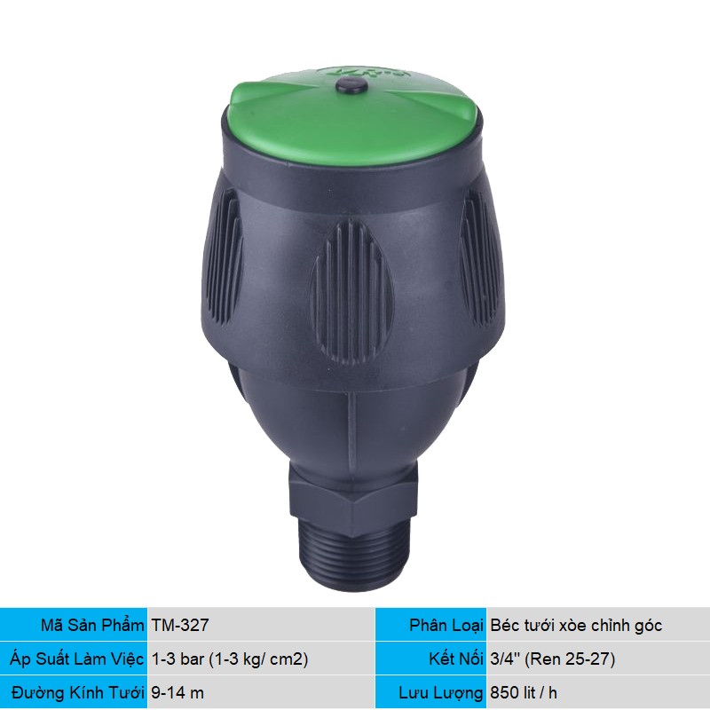 Đầu tưới phun mưa, tưới xòe, chân cắm ren 21 là một ứng dụng tuyệt vời cho khu vườn của bạn khi bạn muốn lắp đặt hệ thống tưới tự động. Lượng nước được điều chỉnh dễ dàng. Hạt nước phun ra mịn và có độ phủ đồng đều. Thích hợp cho tưới rau, tưới hoa, tưới sân vườn