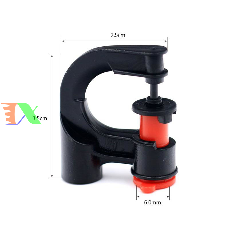 Béc tưới xòe nối chân trơn 6mm lượng nước được điều chỉnh dễ dàng. Hạt nước phun ra mịn và có độ phủ đồng đều. Thích hợp cho tưới rau, tưới hoa, tưới sân vườn...