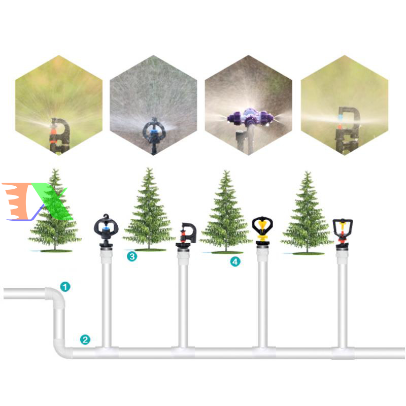 Đầu tưới xoay 90° (Phun sương, phun mưa 90 độ), là ứng dụng tuyệt vời cho khu vườn của bạn khi bạn muốn tưới tự động. Đầu tưới xoay phun mưa trơn 6mm TM-203, Béc tưới xòe 360°, Béc bọ tưới tự động