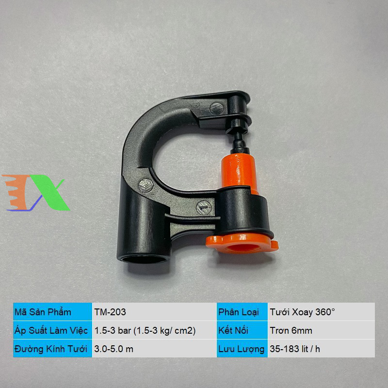 Đầu tưới xoay phun mưa trơn 6 mm TM-203, Béc tưới xòe 360°, Béc bọ tưới tự động