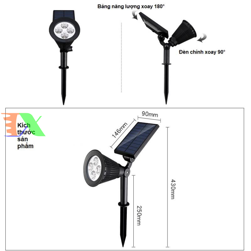 Đèn chiếu tiểu cảnh năng lượng mặt trời SAN-4, Đèn trang trí sân vườn