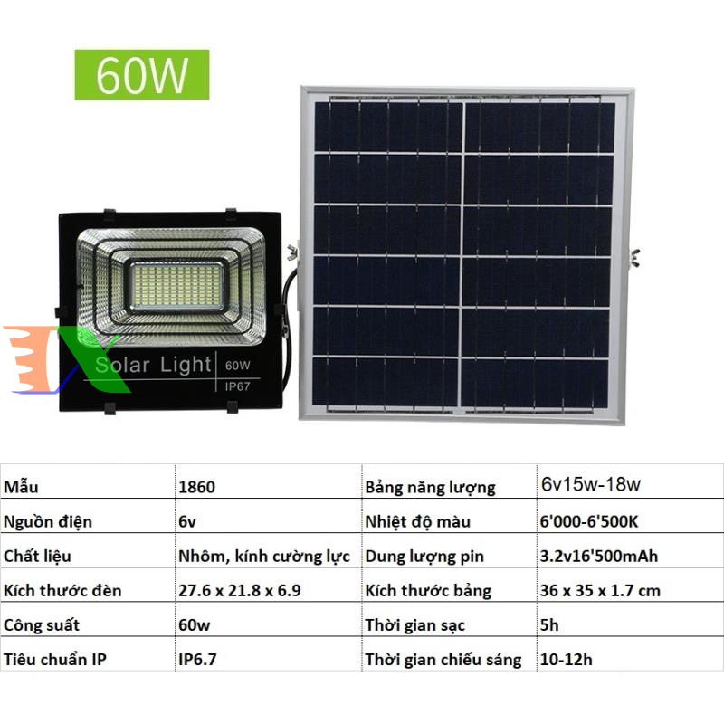Đèn led năng lượng mặt trời SUN-1860 60W, Đèn năng lượng mặt trời IP 67