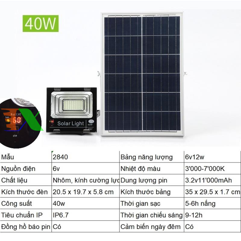 Đèn led năng lượng mặt trời MON-1740 40W, Đèn năng lượng mặt trời IP 65