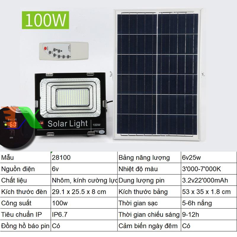 Đèn led năng lượng mặt trời SUN-18100 100W, Đèn năng lượng mặt trời IP 67