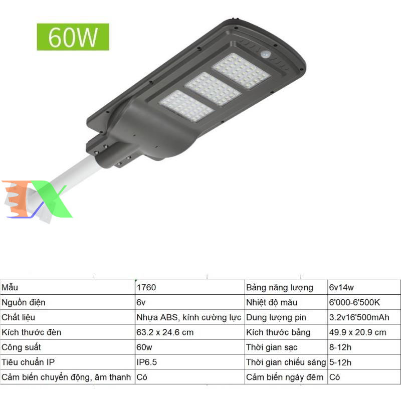 Đèn led năng lượng mặt trời MON-1760 60W, Đèn năng lượng mặt trời IP 65
