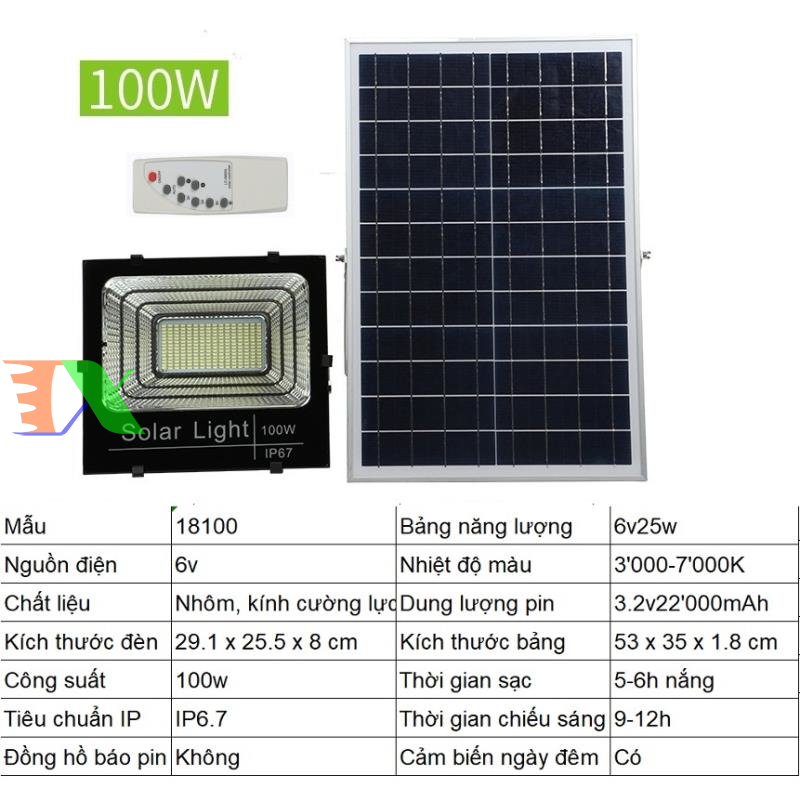 Đèn led năng lượng mặt trời SUN-18100 100W, Đèn năng lượng mặt trời IP 67