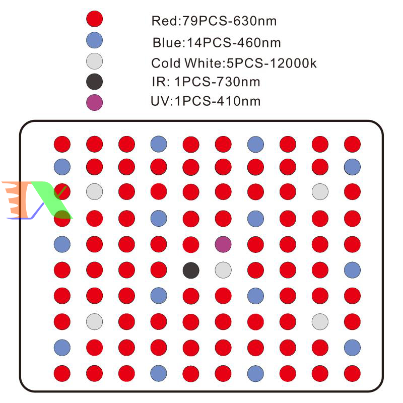 Từ kinh nghiệm và nghiên cứu cho thấy cây chỉ thật sự cần 2 dãy ánh sáng đỏ, 2 dãy ánh sáng xanh dương, 1 dãy ánh sáng cam, nếu cần thì bổ xung thêm 1 dãy ánh sáng trắng để cây có thể phát triển một cách mạnh mẽ.