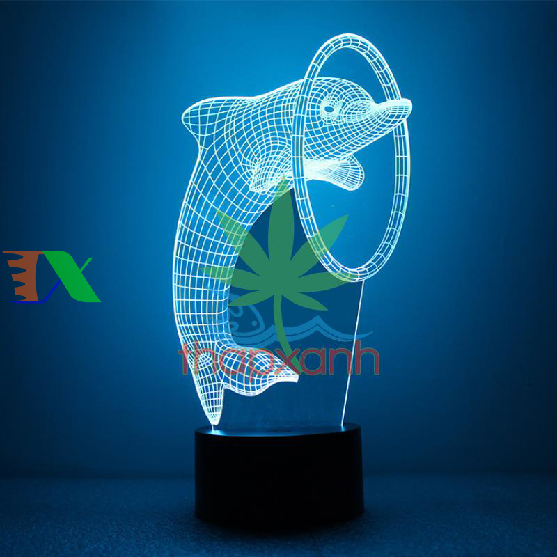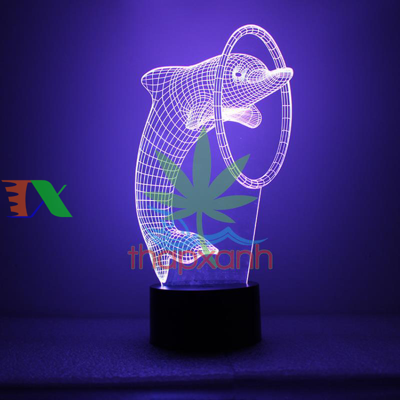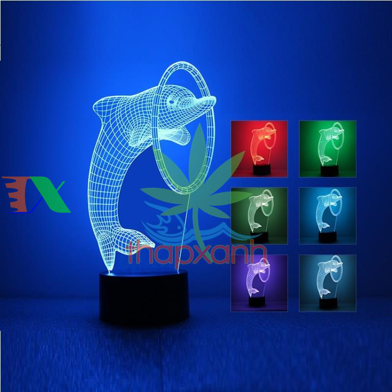 Đèn ngủ 3D hay Đèn ngủ cá heo 7 màu (đỏ, xanh lá cây, xanh nước biển, vàng, xanh, tím, trắng) thiết kế hiện đại với hình khối sắc nét, ánh sáng êm dịu, mang hơi thở đại dương, đưa bạn và em bé vào giấc ngủ ngon