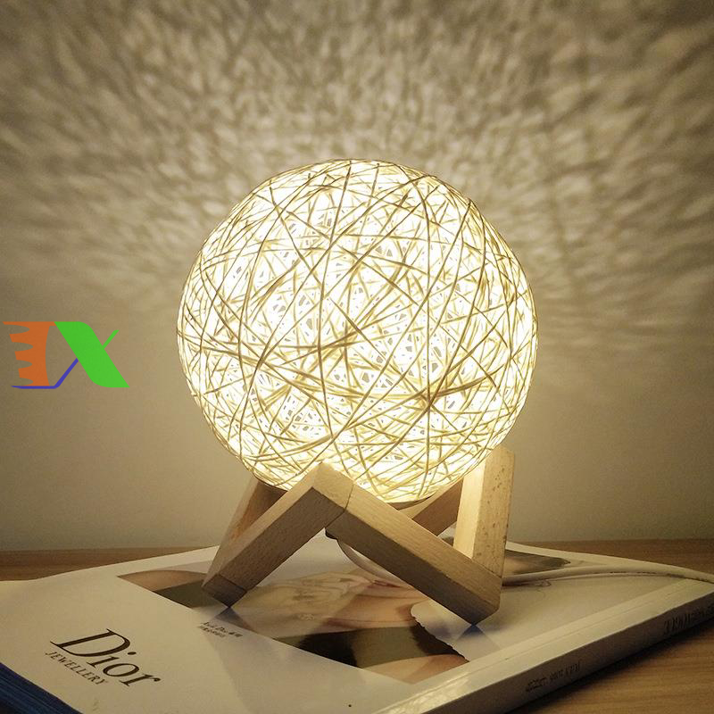 Đèn ngủ cầu mây đơn sắc GO-03, Đèn ngủ, Đèn led trang trí để bàn ấm áp