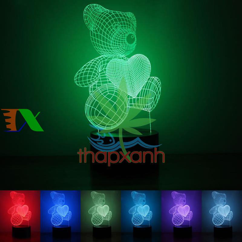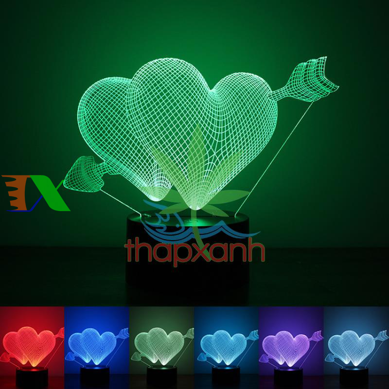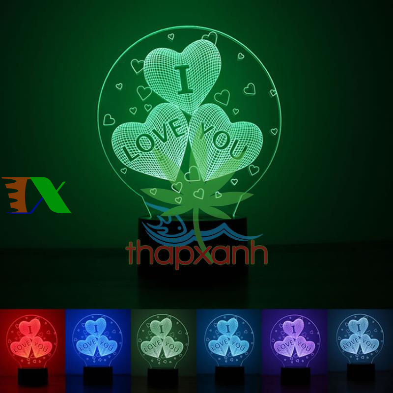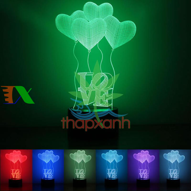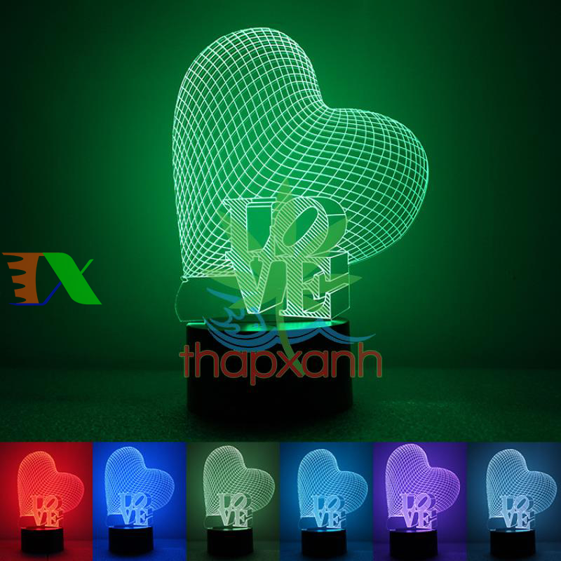 Đèn ngủ, đèn trang trí Led 3D, Đèn ngủ 7 màu (đỏ, xanh lá cây, xanh nước biển, vàng, xanh, tím, trắng) làm tăng sự ấm áp, lãng mạn cho phòng ngủ nhà bạn.