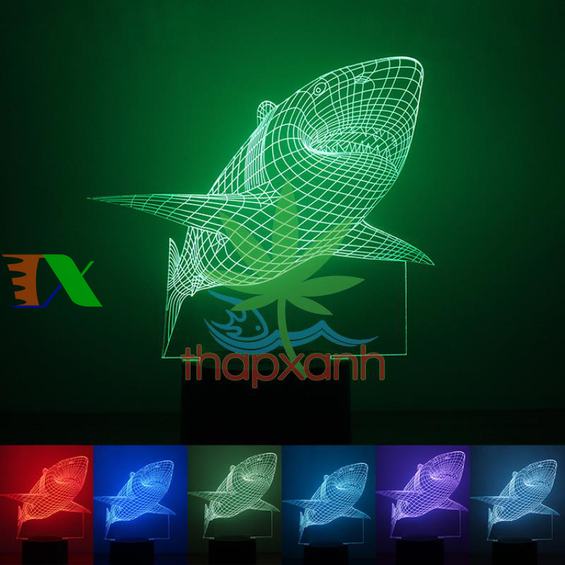 Đèn ngủ, đèn trang trí Led 3D, Đèn ngủ 7 màu (đỏ, xanh lá cây, xanh nước biển, vàng, xanh, tím, trắng) thiết kế hiện đại với hình khối sắc nét, ánh sáng êm dịu, mang hơi thở đại dương, đưa bạn và em bé vào giấc ngủ ngon. Dễ dàng thay đổi mày sắc bằng nút bấm điều chỉnh.