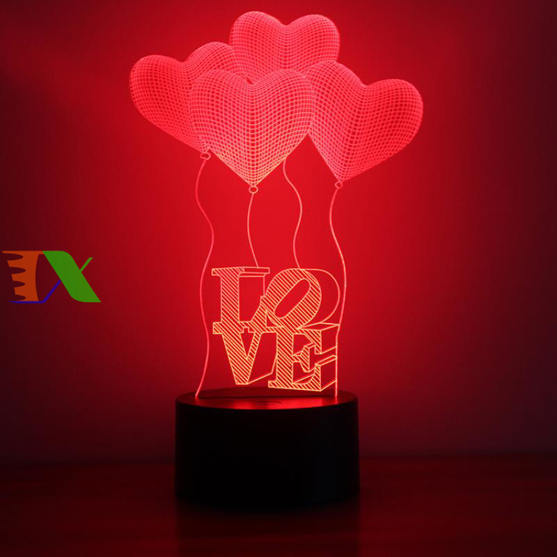 Đèn ngủ, đèn trang trí Led 3D, Đèn ngủ 7 màu mini (đỏ, xanh lá cây, xanh nước biển, vàng, xanh, tím, trắng) làm tăng sự ấm áp, lãng mạn cho phòng ngủ nhà bạn.