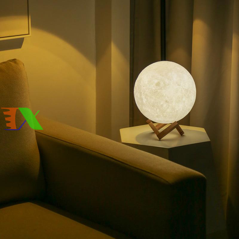 Đèn ngủ mặt trăng, Đèn mặt trăng 3 màu 20cm, Đèn trang trí Moon Light 3D