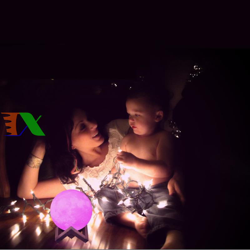 Đèn ngủ mặt trăng, Đèn mặt trăng 7 màu 20cm, Đèn trang trí Moon Light 3D