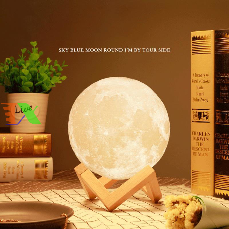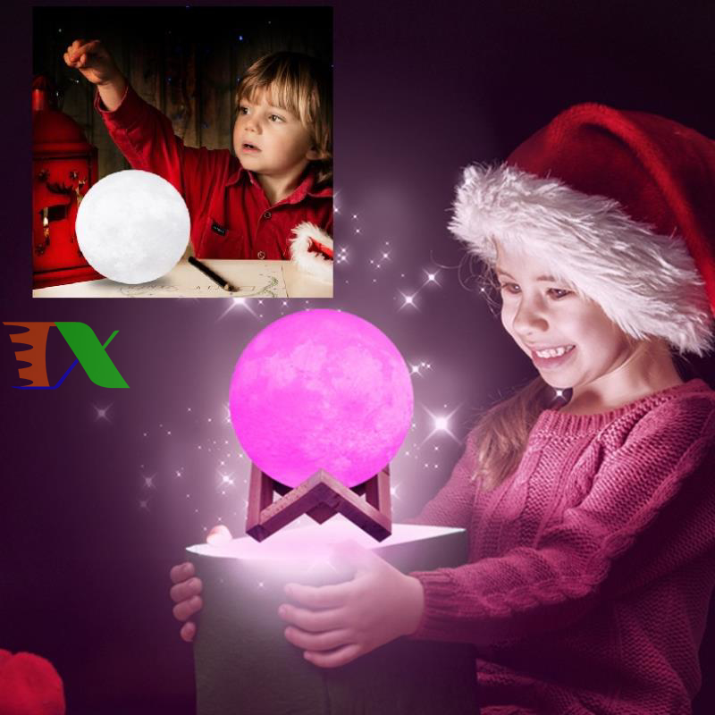 Đèn ngủ mặt trăng, Đèn mặt trăng 3 màu 20cm, Đèn trang trí Moon Light 3D